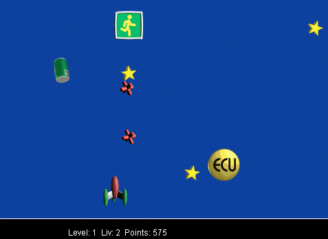 Another game I did is called Euro-Space. This was done for a Danish EU-sceptic organisation, and you obviously fight various symbols of the Danish EU-debate.