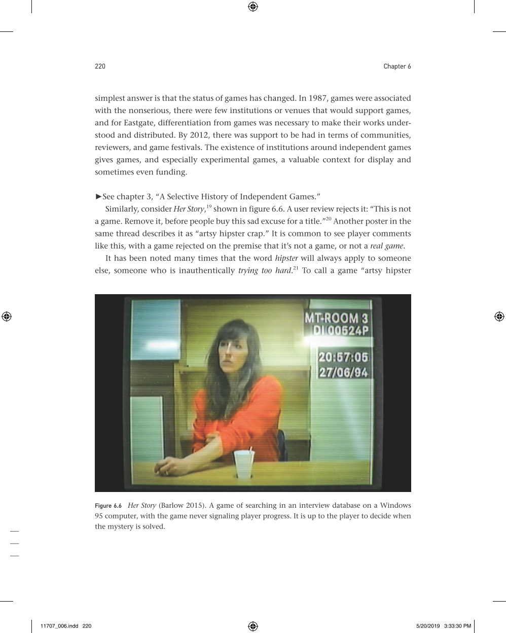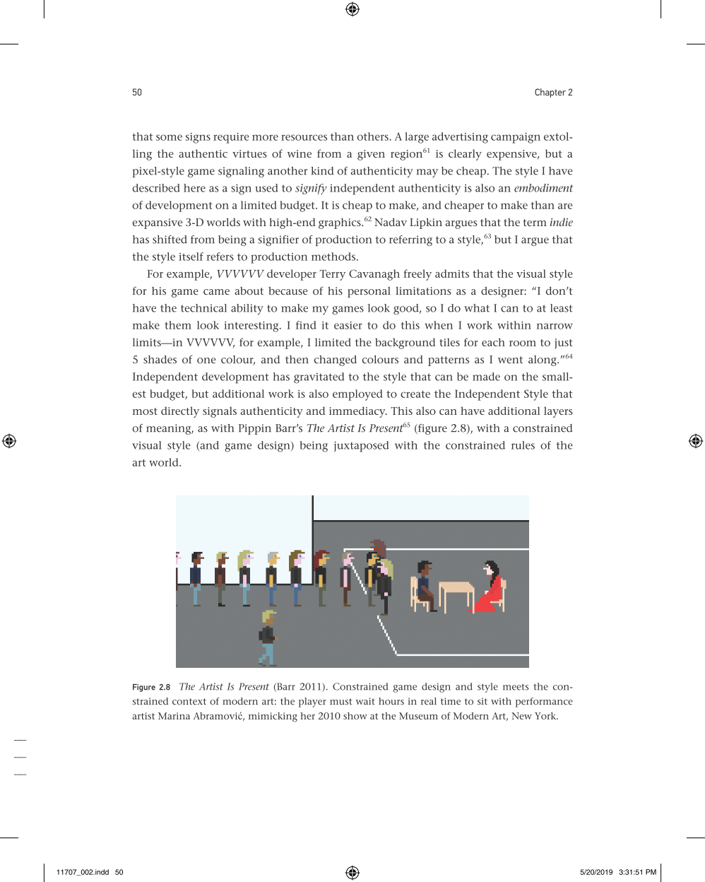 Juul describes how the visual style of independent games signals their authenticity—often by referring to older video games or analog visual styles. He shows how developers use strategies for creating games with financial, aesthetic, and cultural independence; discusses the aesthetic innovations of “walking simulator” games; and explains the controversies over what is and what isn't a game. Juul offers examples from independent games ranging from Dys4ia to Firewatch; the text is richly illustrated with many color images.