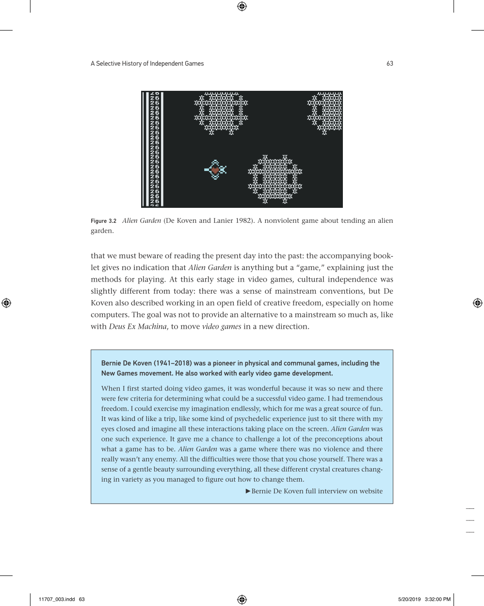 An investigation of independent video games—creative, personal, strange, and experimental—and their claims to handcrafted authenticity in a purely digital medium.