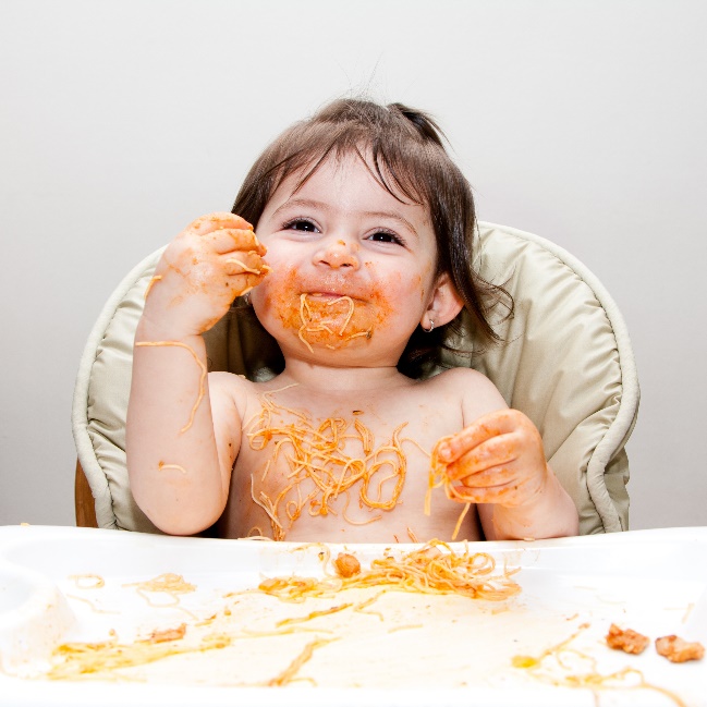 I can testify to the fact that children will play with food, as shown in Figure 6. The tired parent is exasperated by the child’s disregard of the utility of the food, meant to make the child grow; to make the child healthy. But the child is creative and sees that food can have so many other aspects. It has texture, color, sound, it can be thrown around, you can rub it in your face, it can garner a response from adults. The child engages in creative play by exploring food in ways it was not intended. A large part of socialization is to learn to focus on food for its utility.1